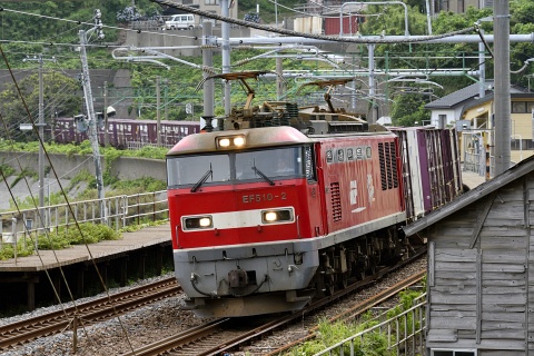 △ 信越本線 4076レ 八戸タ発百済タ行 高速貨物列車。EF510-2(富山)、笠島駅。[2017.07、新潟県柏崎市]