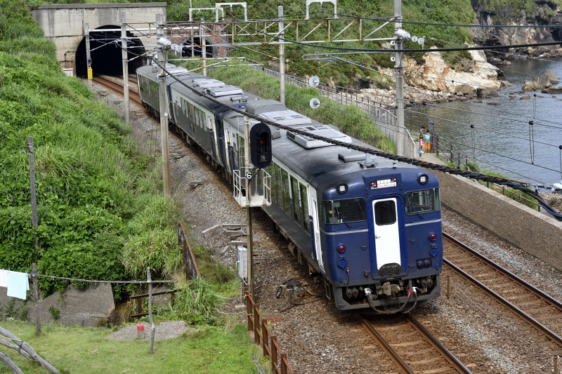 信越本線の直江津-柏崎間は海岸線に沿って走る風光明媚な区間です。