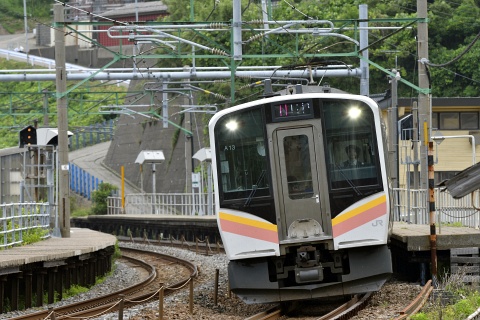 △ 信越本線 1328M 普通 長岡発直江津行。クモハE128-113(新ニイA13編成)、笠島駅。[2017.07、新潟県柏崎市]
