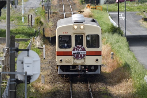竜ヶ崎線開業120周年の記念ヘッドマークを着けて運行中です。