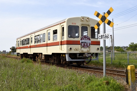 関東鉄道の竜ヶ崎線を走るキハ532は、1981年に新潟鐵工所で製造されました。 車体は新製ですがエンジンや台車などは国鉄からキハ20系の主要機器を譲り受けた、いわば準新造車です。 キハ20系譲りのDMH17C (180PS/1,500rpm) エンジンは、2013年にDMF13HZへ換装されています。 1997年にキハ2001、キハ2002が入線してからは予備車的な存在となったキハ532ですが、毎週土曜日の9時~15時の間(竜ヶ崎駅発9:19~竜ヶ崎駅着15:02)は単行で佐貫-竜ヶ崎間を往復しています。