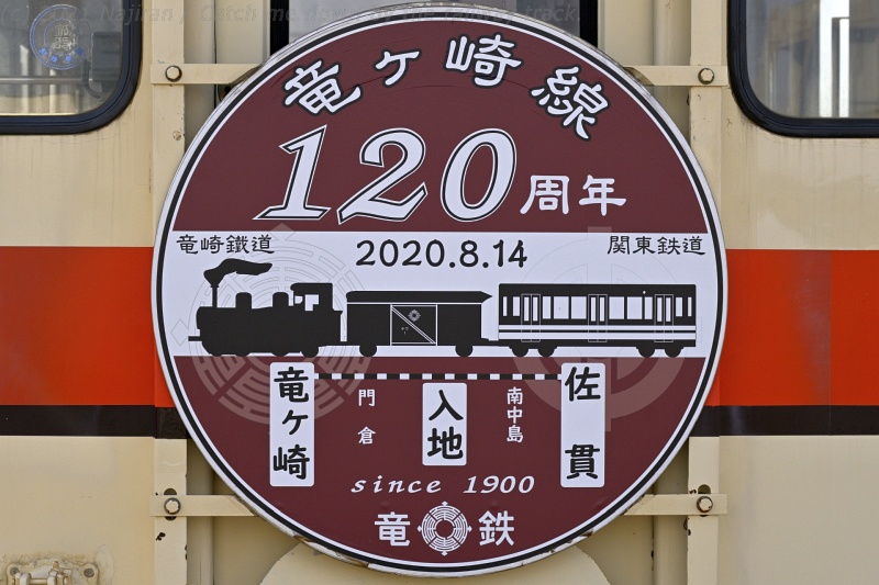 常磐線佐貫駅(現竜ヶ崎市駅)と竜ヶ崎駅間(4.5km)は、関東鉄道の前身である竜崎鐵道によって1900年8月14日に開業しました。 開業から120周年を迎えた2020年8月、関東鉄道は開業セレモニーを開催しました。 その時に作成された記念ヘッドマークは開業時のSL列車が貨車や現代の気動車をけん引するデザインで、キハ532はこれを着けて運転されています。 また竜ヶ崎駅では、竜ヶ崎市内の高校生による「竜鉄の歴史をたどる企画展」も開催されています。