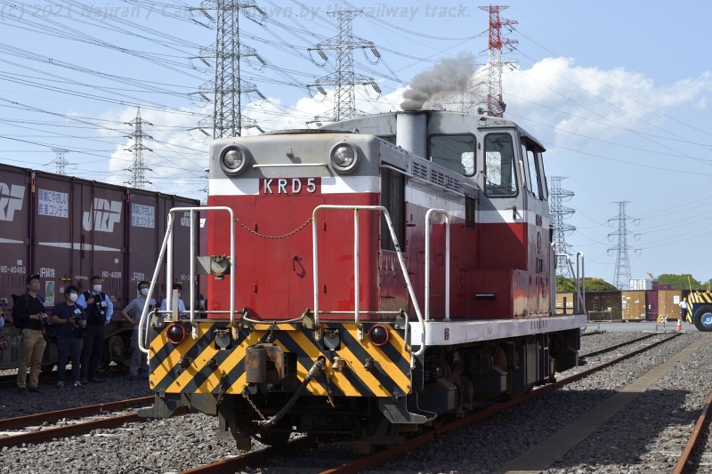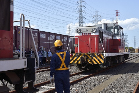鹿島臨海鉄道撮影会は順調に進み、6000形気動車の方向幕をいろいろ変えての撮影なども行われました。 その後、KRD5のエンジンが始動され、前に止まっていたKRD4に連結。 KRD5がKRD4を押す形で神栖駅構内の本屋付近まで走行して、撮影会のメニューが終了しました。 コンテナホーム周辺では、廃車解体車両から外された部品などの物販も行われました。
