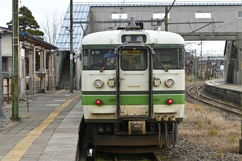 新潟車両センター(新ニイ)の115系は、3両 x 7編成 が様々な色に塗装されて運用を続けています。 編成番号N33~N38、N40編成と呼ばれるグループで、いずれも長野からの転入車です。 信越本線が2運用で残りは越後線(弥彦線)内での運用となっており、この春のダイヤ改正に向けて動向が気になります。