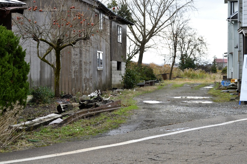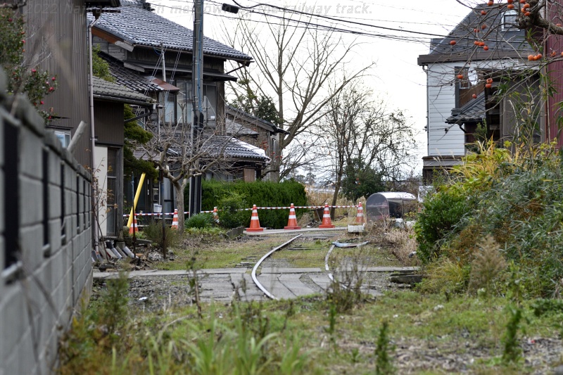 寺泊駅は以前は大河津駅という名前で、当時は越後交通長岡線が乗り入れていました。 駅前の線路跡には往時のレールが残ります。