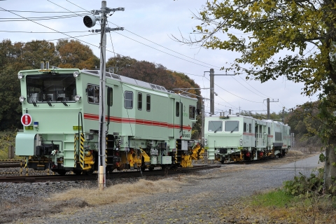 常磐線の荒川沖-土浦間、花室川に架かる橋梁を挟んで保線の施設があり、マルチプルタイタンパ(マルタイ)やクレーン付のトロッコなどが時々止まっていますが、最近になってマルタイとバラストレギュレータに新車が投入された模様です。保線用の側線に、真新しいマルタイとバラストレギュレータが来ていたので写真を撮ってきました。Plasser&Theurer製の09-16とKSE2002Eで、東鉄工業の草色の車体です。