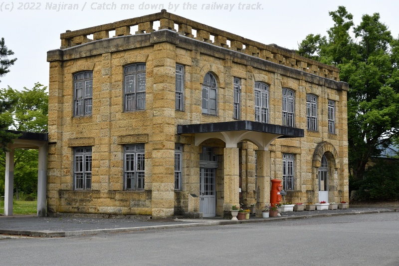 旧高畠駅は、奥羽本線の糠ノ目(ぬかのめ)駅と二井宿間を結んでいた高畠鉄道の駅として1922年に開業しました。 1934年8月に高畠石で出来た立派な駅舎に改築され、駅舎落成式が挙行されました。 駅舎に使用されたのは、高畠石の中でも黄色みがかった色彩が美しい瓜割石と呼ばれる石で、前回のブログに書いた瓜割石庭公園から切り出されたものです。 その後、高畠鉄道は山形交通高畠線となり、製糸業製品、木材、果物や旅客などの輸送に活躍しましたが、1974年に廃止されています。