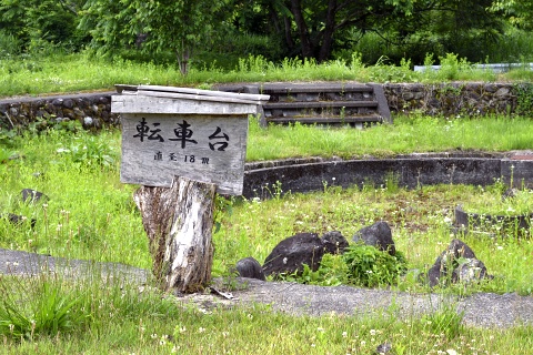 喜多方方面に旧線路敷を少し歩くと、転車台の跡が保存されています。