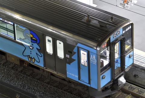 仕業を終えて戻った八戸駅直結のJR系ホテルの窓から、駅に停車中の青い森鉄道の車両を1枚。