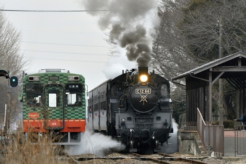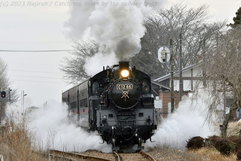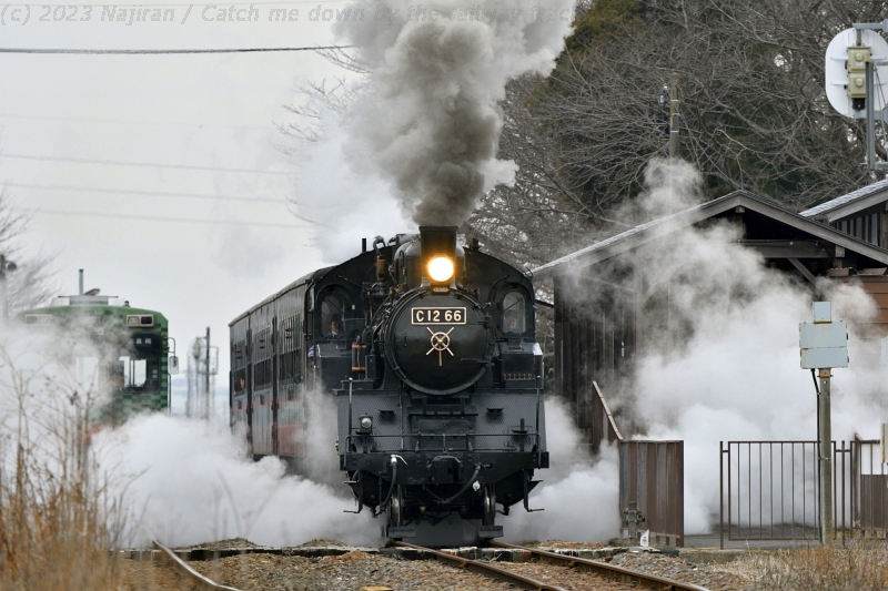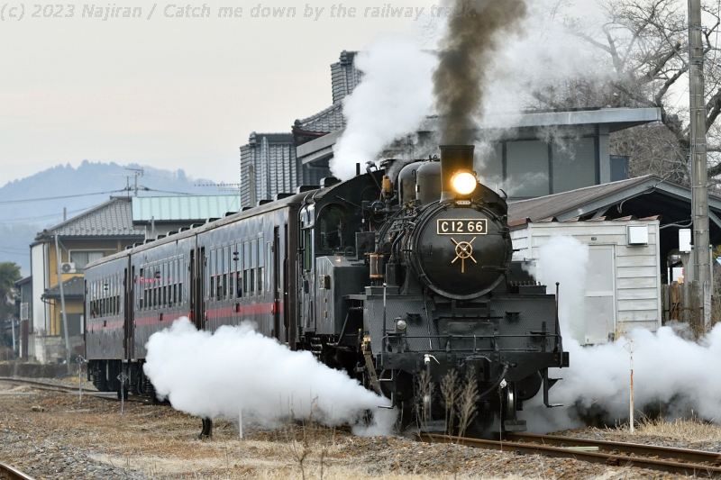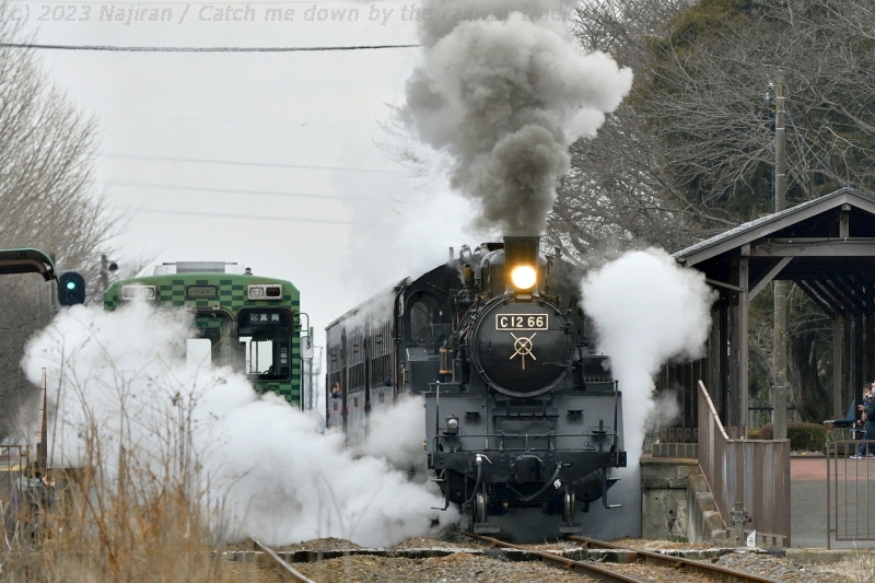 C12 66 機関車が定期検査に入るため、2023年1月16日~3月3日の間、SLもおかと関連する列車が運休します(真岡鐵道・真岡線SL運行協議会)。 運休前の最後の土・日ということで、SLもおかに会いに栃木県まで行ってきました。 両日とも天気はどん曇りでしたが気温はそれほど低くなく、冬枯れた雑木林をバックに快走する列車や駅の出発風景などを撮ったり眺めたりと、楽しい休みになりました。 市塙-笹原田間の沿線からは、雪化粧した奥日光の山々がきれいに見えていました。