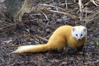 朝の通勤列車の合間に、線路端の側溝からテンが顔を出しました。