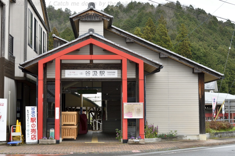 たにぐみ道が通る谷汲市街地には、2001年に名鉄谷汲線が廃止されるまで終着駅の谷汲駅があり、華厳時に参詣する人々で賑わったそうです。 今は旧谷汲駅構内にモ755(モ750形)とモ514(モ510形)が静態保存され、当時の駅舎内待合室には谷汲線の資料が展示されいます。