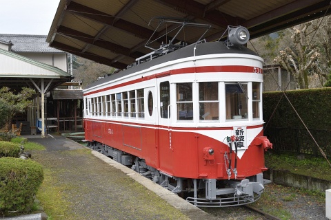 モ510形の中で最後まで活躍したモ512~モ514の3両は、それぞれ旧美濃駅、JR岐阜駅前、旧谷汲駅に保存されています。