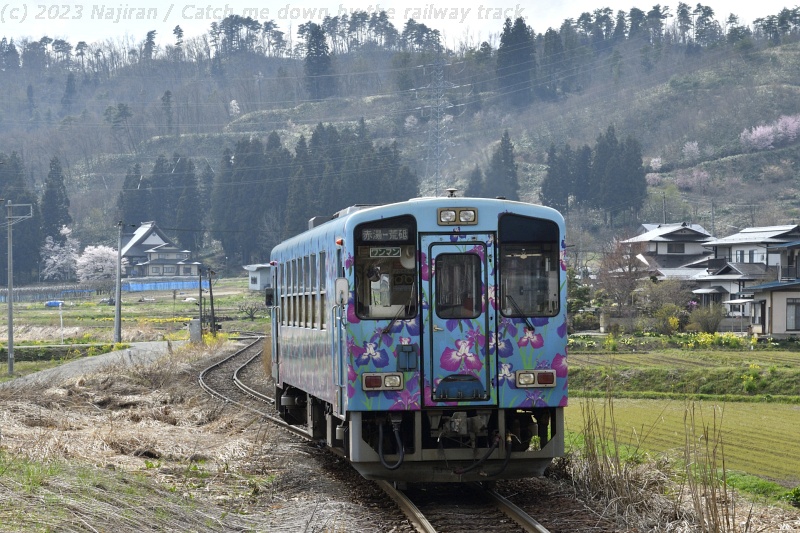 山形鉄道 216D 赤湯行、YR-888、梨郷。[2023-04、山形県南陽市]