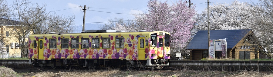沿線の花マップに紹介された桜は、梨郷駅のホームと待合室の周辺にありました。 一部がバナーの写真に写っています。 色や咲き方の違う桜が咲き集うまで、あと4~5日だったでしょうか。