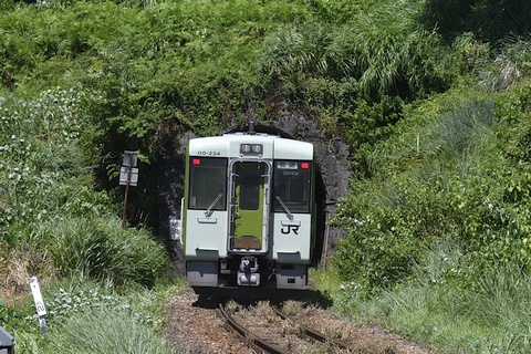 短い楢山トンネルに入る列車を後追いで。