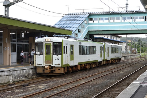 野辺地駅で発車時刻を待つ大湊行普通列車に高校生が乗り込みます。