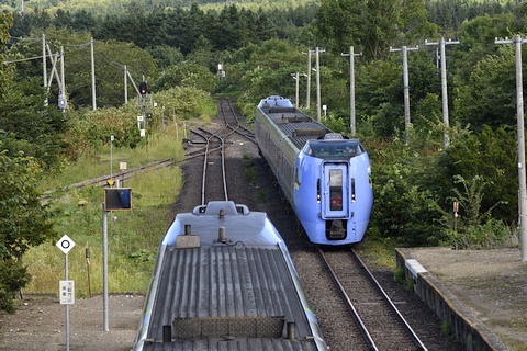 老朽化で引退したキハ183系に変わって、2023年3月からキハ283系が石北本線の特急で運用されています。 石勝線・根室本線の特急おおぞらとして2022年3月まで活躍していた車両が、1年のブランクを経て復活しました。 毎日1回、下り・上りの特急大雪がここ、瀬戸瀬駅で交換します。