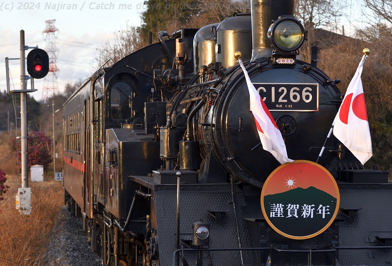 SLもおか(SL新年号)を牽引する C1266は、製造から90年を経て卒寿を迎えた昨年、 記念企画の第3弾として形式入りのナンバープレートに交換されました。