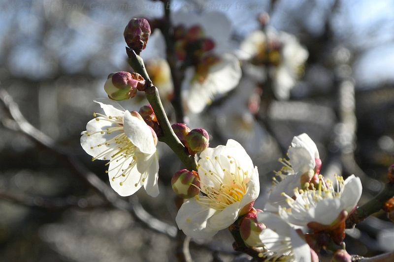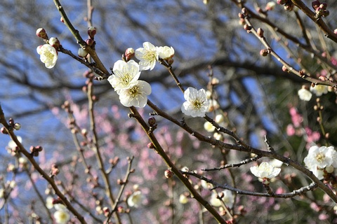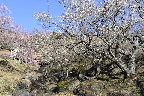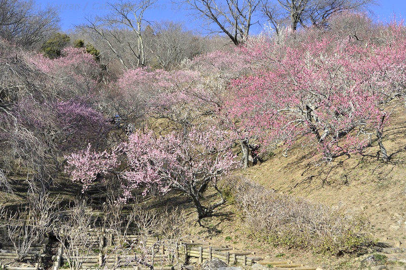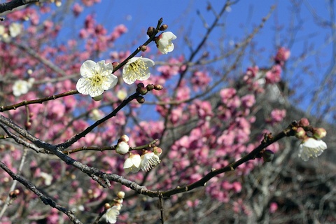 筑波山梅林は筑波山の標高250m付近にあります。 植えられた約1,000本の紅白の梅の木が、ちょうど見ごろを迎えていました。