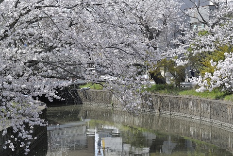 満開を迎えた土浦市内の桜を見てきました。 駅から10分ほどの亀城公園では、掘りに渡されたこいのぼりの横で桜が満開でした。