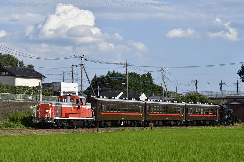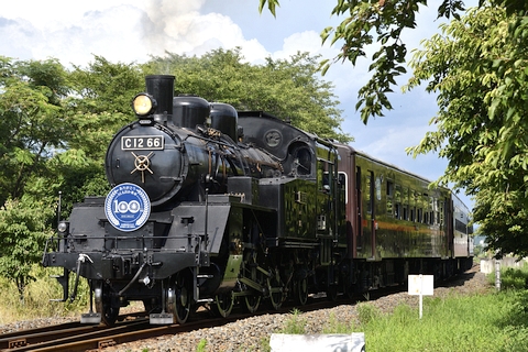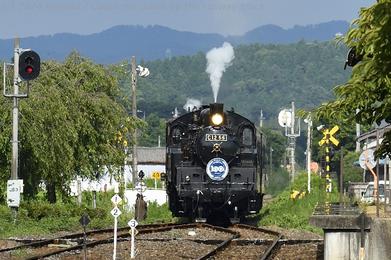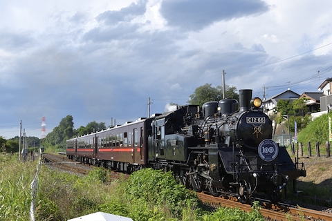 △ 真岡鐡道 6002レ SLもおか、下館行。C12 66、西田井駅。[2022-07、栃木県真岡市]