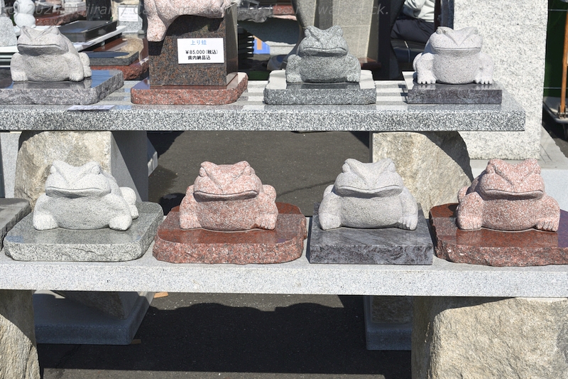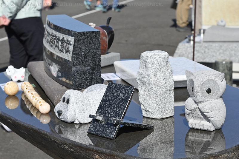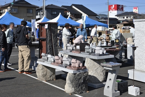 原石や墓石や灯籠、モニュメント、ガーデニング用の置物など、大小様々なの加工品が展示・販売されていました。