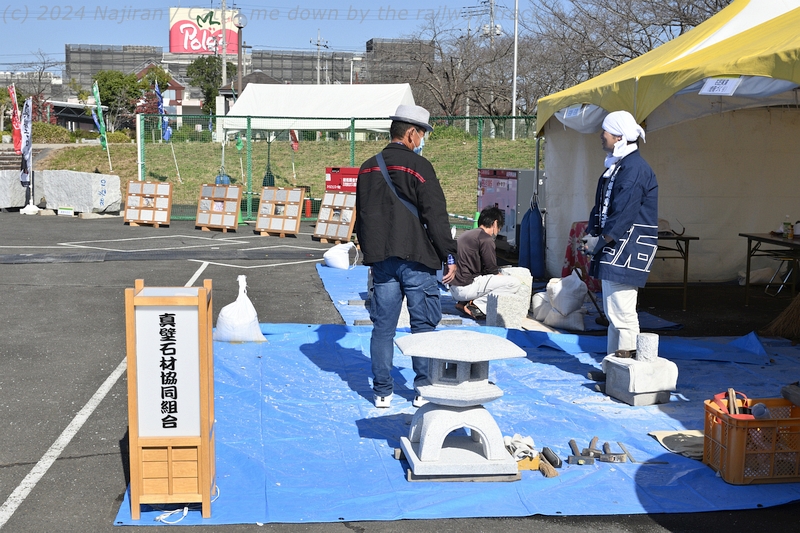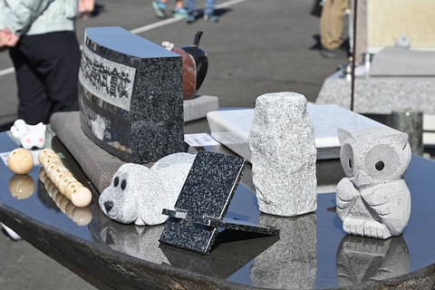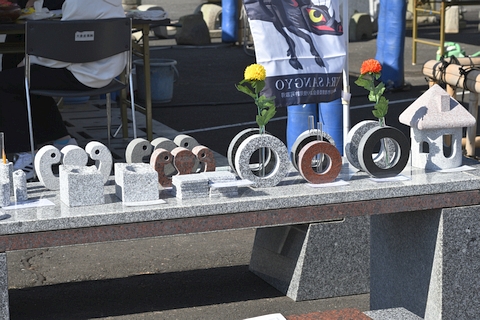 石職人さんによる石割りや石積みなどの実演コーナーが設けられ、有料の体験型イベントコーナー「いしあそびひろば」では、ミニ灯ろう作り、みかげ石彫刻やストーンペイントなどを親子で楽しむ姿が見られました。