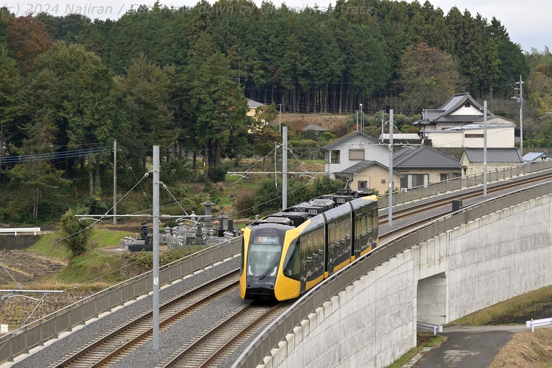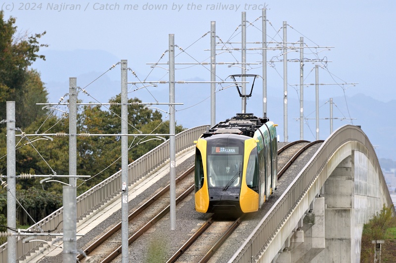 川と台地が織りなす複雑な地形を最新のLRTがどのように越えていくのか、周囲に広がる田園風景とともに興味深い区間です。