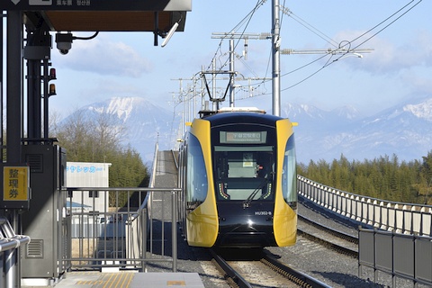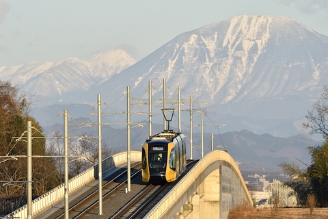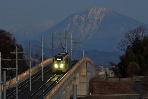 真っ暗な空に星が輝く始発電車前からスタンバイ。 やがて東の空が明らんで、雪化粧した男体山や日光白根山が薄っすらと赤く色づきます。 それから1時間足らずの間。 日が昇り景色が柔らかな朝の光に包まれるまで、刻々と変化する光の中を走り抜けるライトラインを追いました。