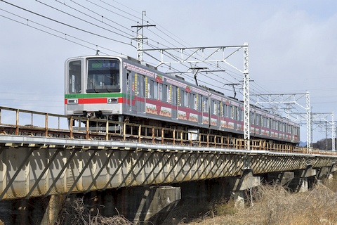 2025-01-19、いちご王国・栃木のPRと沿線地域の活性化を図る目的で運行を開始した、いちごラッピング電車 (Berry2 Happy Train)です。