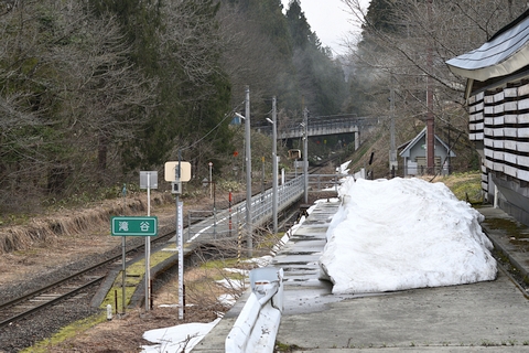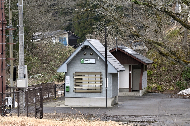 滝谷駅は、会津若松起点39.6km、時間にして1時間15分位の場所にあります。 現在の駅は、旧島式ホームの片面を使用するような形の、交換設備のない1面1線の形式です。