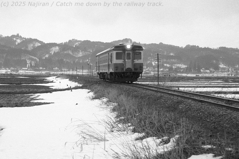 この頃、会津坂下の近くで上りの急行いなわしろ1号を撮影したことがあります(上の写真)が、普通列車用に塗分けられたキハ52が単行でやってきて驚きました。 会津若松でどんな編成になっていたのか、見てみたかったです。