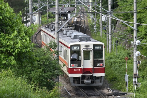 △ 野岩鉄道会津鬼怒川線 803レ 会津高原尾瀬口行。クハ62103+モハ61103、上三依塩原温泉口-男鹿高原。[2025-06、栃木県日光市上三依]