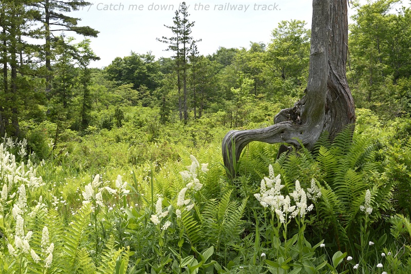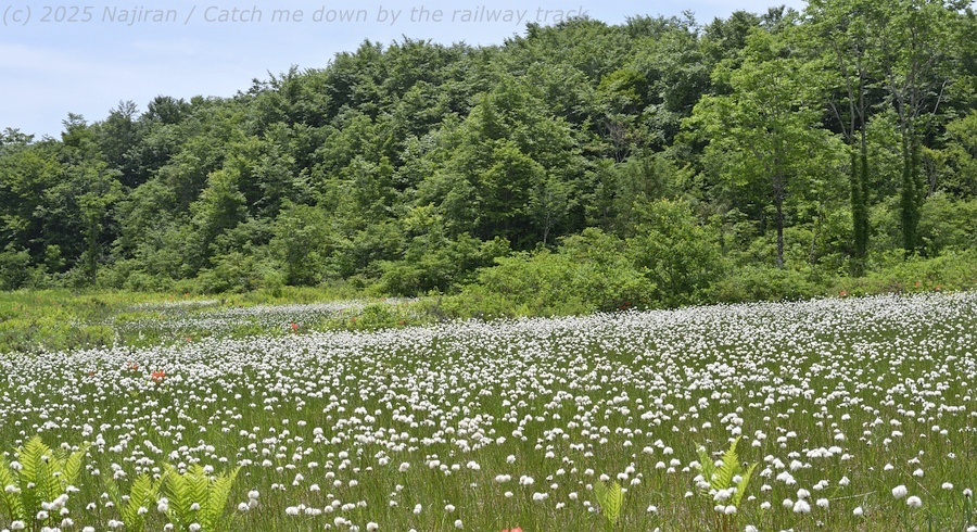 野岩鉄道の6050系を撮影していましたが、4時間ほど空き時間ができたので、久しぶりに駒止(こまど)湿原を訪ねることにしました。 駒止湿原は大半が福島県大沼郡昭和村にあり、一部が南会津郡南会津町にまたがる高層湿原です。 湿原の標高は約1,100mで、冬季の積雪は3~4mにもなります。 湿原は大谷地、白樺谷地、水無谷地の3つからなり面積は約27haで、それに周辺の森林を含めた約148haが国の天然記念物に指定されています。