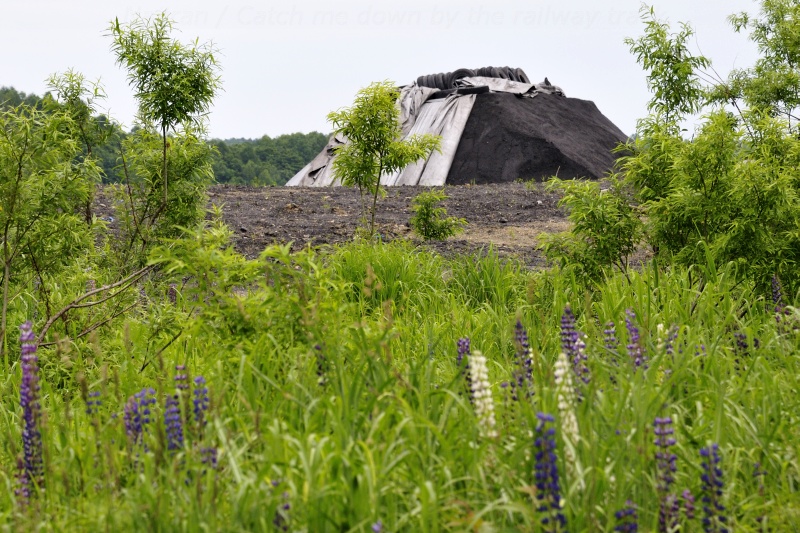 1971年(昭和46年)に廃止された留萌鉄道は、ここ恵比島駅を起点として明治鉱業昭和炭鉱があった昭和駅との間を結んでいました。駅の裏手には、旧留萌鉄道の社屋が残っています。留萌鉄道を廃止に追いやったのは炭鉱の閉山ですが、実は旧留萌鉄道沿線から峠を超えた小平町では、住吉炭鉱という露天掘りの炭鉱が今でも生産を続けているのです。掘り出された石炭はトラックで輸送され、その一部が恵比島駅裏手にある貯炭場に置かれています。