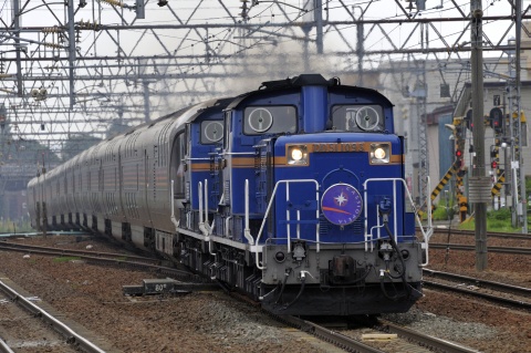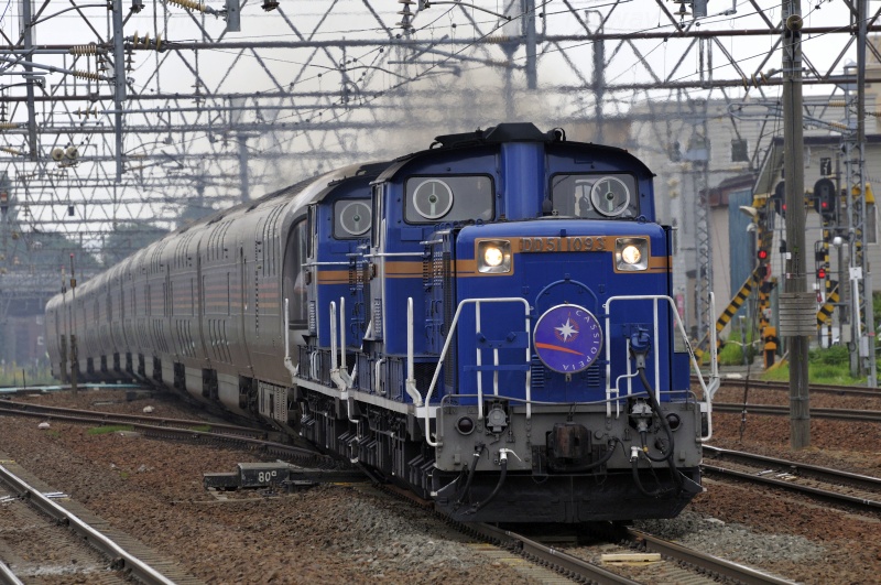白石駅を通過する寝台特急「カシオペア」です。