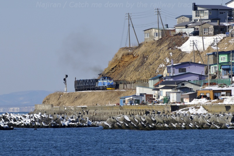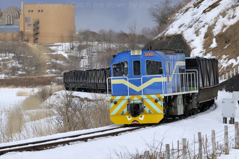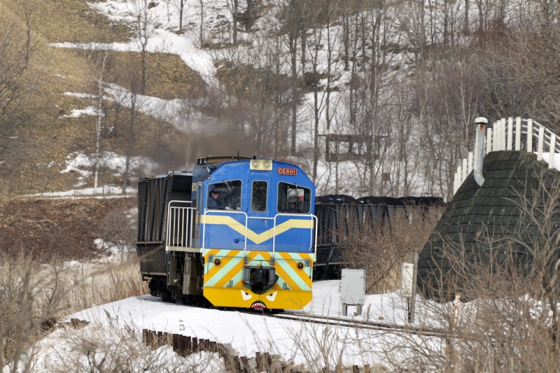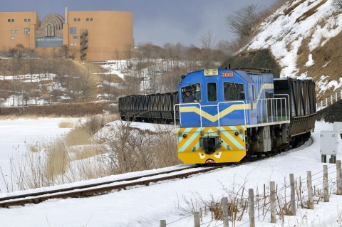 この鉄道は、石炭輸送を専業とする国内唯一の運炭鉄道です。北海道で唯一の民営鉄道でもあり、先に紹介したディーゼル機関車4両(液体式3両、電気式1両)、連接石炭貨車14ユニット(28両)の他、保線用車両としてモーターカー1台と排雪モーターカー1台を有しています。春採選炭ポケットでの積み込みと知人での荷おろし時には列車を2分割して作業時間を短縮しますが、その制御や貨車の扉の開閉は機関車からの操作で行うことが出来るよう整備され、合理的な輸送を行っています。また、貨車への凍結防止対策や分岐の不転換防止など寒冷地の鉄道故の対策にも積極的に取り組み、厳しい環境下でも安定した輸送を実現することで年間200トンの石炭を輸送しています。