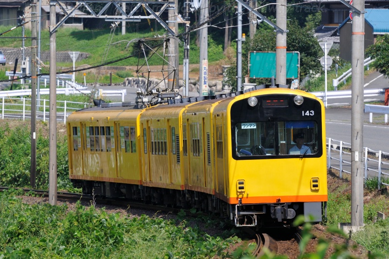 曲線の内側にポールが無い区間で、全編成を入れてたショットを一枚。