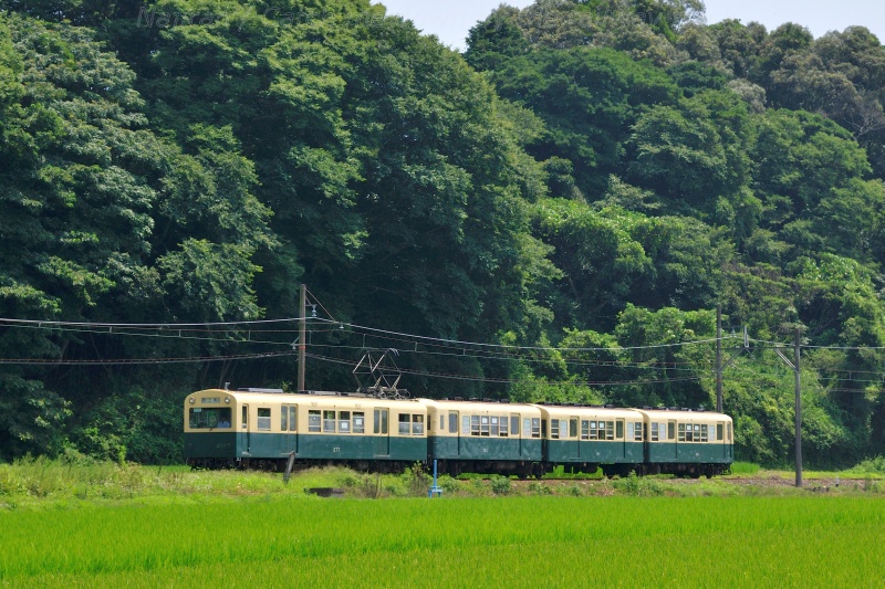 この編成のクモハ277(近鉄時代に新製増備)を除く車両は、三重交通が1959年に湯の山線(当時の三重線)用に新造した3両編成の連接車で、湯の山線が762mmから1435mmへと改軌した際に北勢線に移りました。2013年10月からは三重交通時代の塗装で活躍しています。