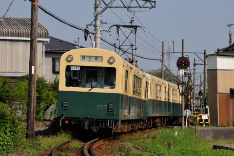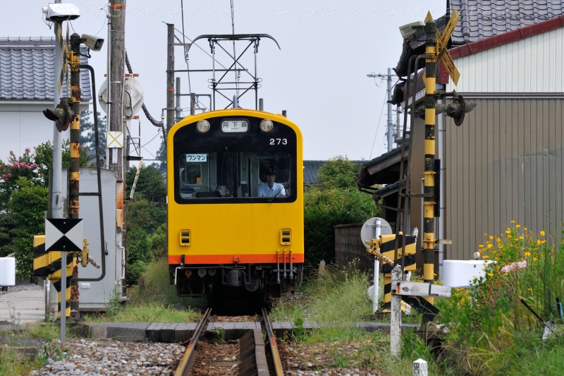 △ 楚原駅に向かい33‰の急坂を上る阿下喜行の電車、クモハ274ほか