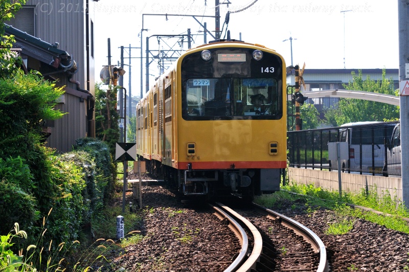 △ 楚原駅停車中の阿下喜行電車、クハ143ほか [2015.08, 楚原駅構内, 三重県いなべ市]