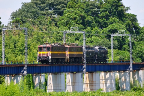 △ 青川橋梁を渡る上りセメント輸送列車、ED451+ED455 [2015.07, 伊勢治田-丹生川, 三重県いなべ市]