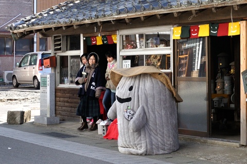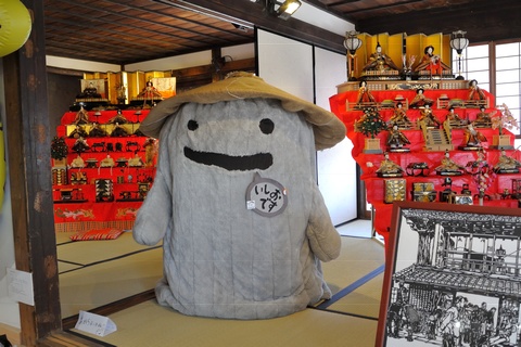 茨城県桜川市真壁町で毎年行われるひなまつりの風景です。古くからの街並みに、160軒を超える家々がひな人形を飾る大きなイベントになりました。 町の観光案内所も兼ねた高久家には、真壁のゆるさ抜群のご当地キャラ「いしおさん」が飾られています。毎年居場所を変えていたので興味を持って見ていたところ、今年はついに畳の部屋に上がってひな飾りと並びました。 真壁は町内に多くの石屋さんがある石の街としても有名です。石のひな飾りは真壁ならではだと思います。