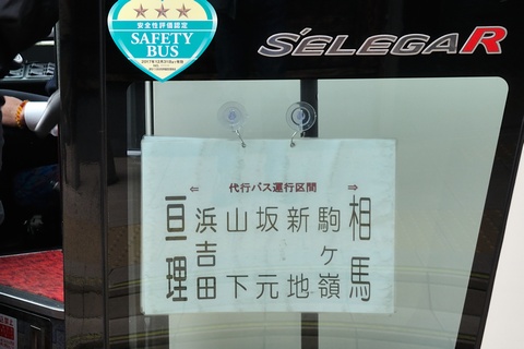代行バスの相馬駅発車時刻は12:30。電車の到着から10分ほどで乗り継ぎが出来ました。
