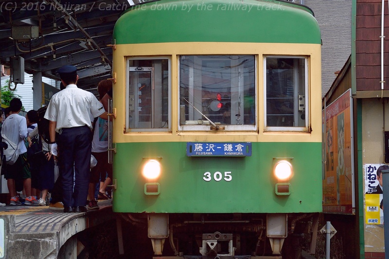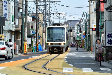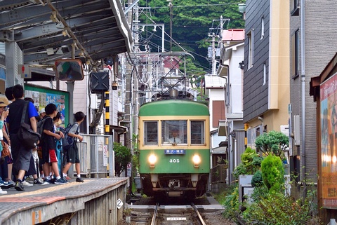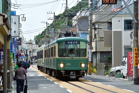 江ノ電こと江ノ島電鉄線は、JR横須賀線の鎌倉駅とJR東海道線の藤沢駅の間、10kmを結ぶ地方鉄道です。途中、地方鉄道には珍しい道路との併用区間があり、路面電車のようでもあります。本来は専用軌道しか走ることの出来ない地方鉄道でありながらこのような併用軌道上を走るのには、ちょっとした理由があります。江ノ電は1902年の開業当時からしばらくの間は軌道条例(のちに軌道法)による軌道でしたが、1945年頃に地方鉄道法による鉄道へ変わった際に、「可及的速やかに専用軌道へ改めること」との条件付きで併用軌道が認められたようです。