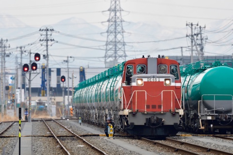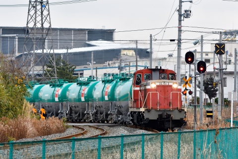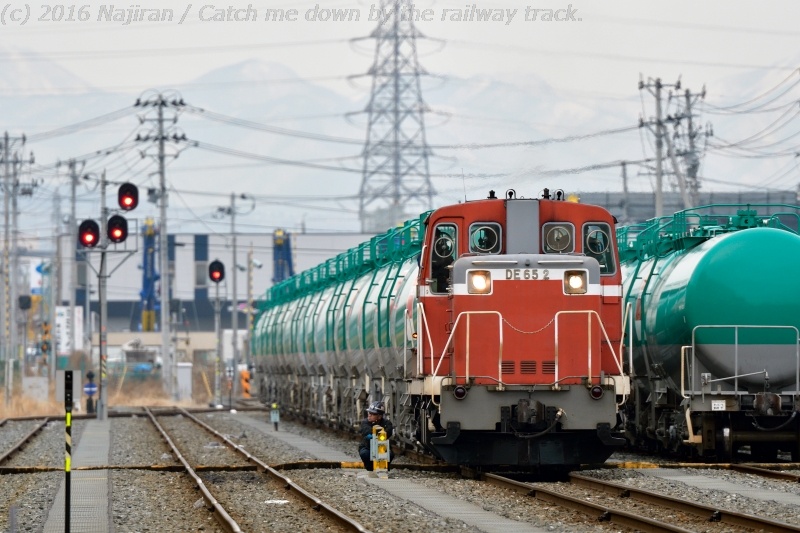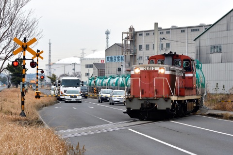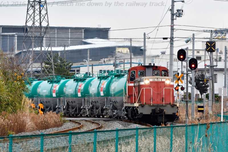 △ 仙台港駅から陸前山王駅に向かう臨時の石油輸送専用列車 8660レ、DE652。 [2017.01、仙台港-陸前山王、宮城県仙台市]