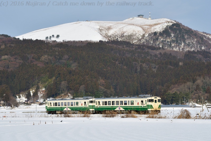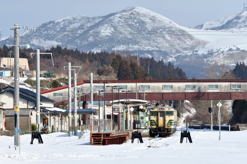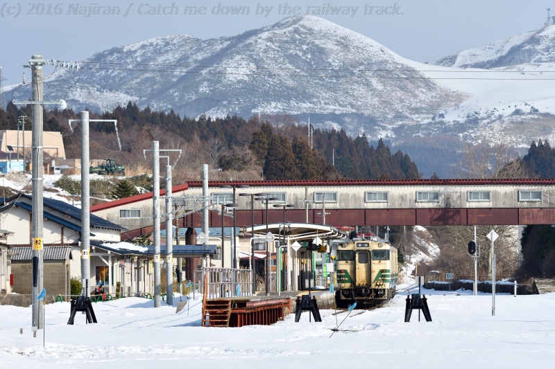 男鹿線を撮るなら寒風山と絡めたいと思い、予め地図で調べておいた脇本駅で下車しました。かつて脇本駅には申川油田からのパイプラインに接続する石油資源開発の専用線があり、2001年の廃止まで原油輸送が船川港駅に向けて行われていました。