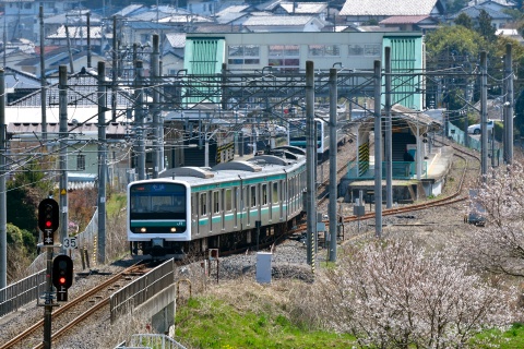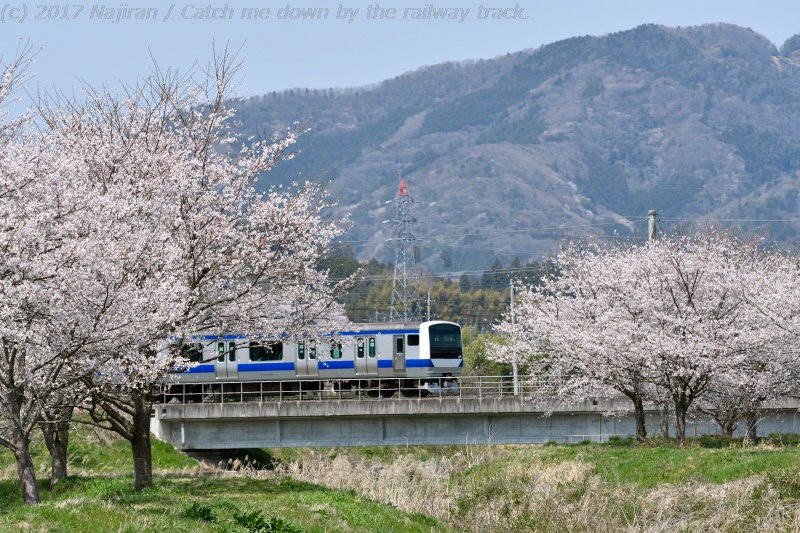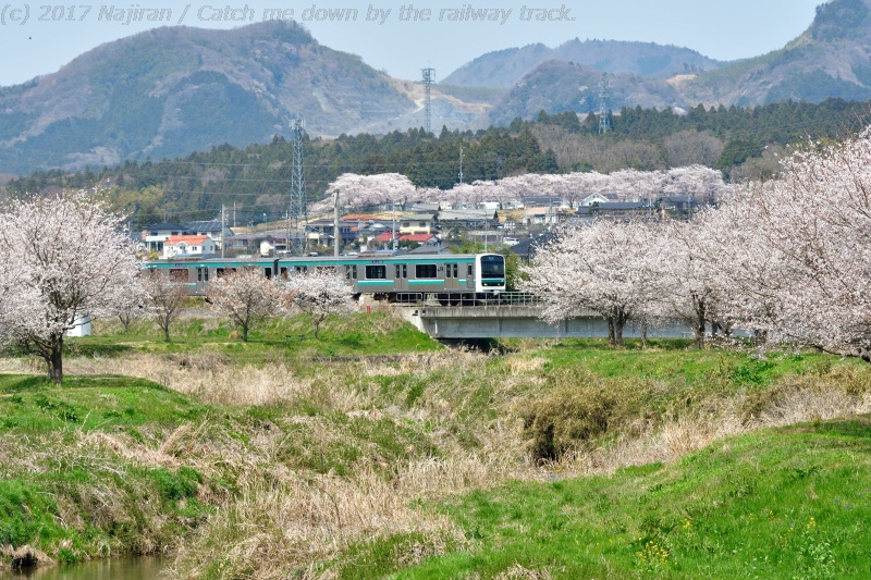 △ 涸沼川橋梁を渡る501系。 [2017.04、茨城県笠間市]