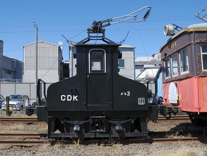 銚子電鉄のマスコット的存在のデキ3は、1922年ドイツ国アルゲマイネ(Allgemeine Elektrizitaets-Gesellschaft: AEG)製の凸型電気機関車である。かつて、ヤマサ醤油工場への貨物輸送や旅客輸送に使用されていたが、現在は営業運転には使用されていない。現存する1067mm軌間の電気機関車としては、最小である。現役を退いたが有志によって整備され、仲ノ町車庫に動態保存されている。